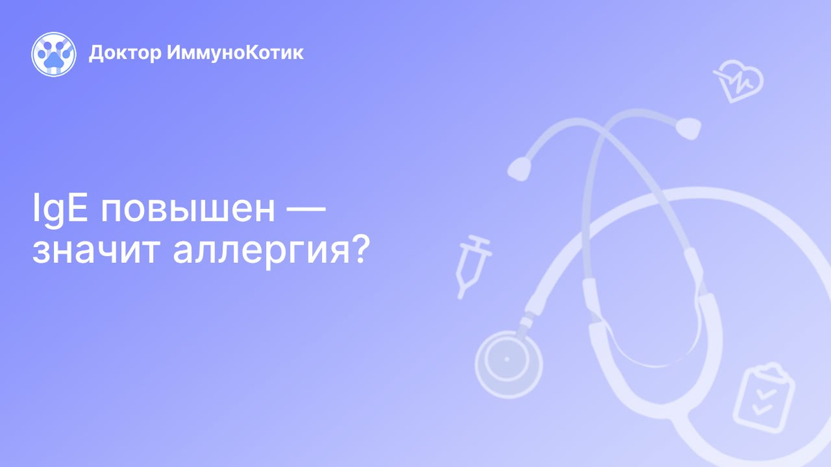 Спойлер: нет! Это один из самых частых "диагнозов", который пациенты ставят себе сами по результатам анализов. Приходит мама с ребёнком (или взрослый сам с собой) и говорит: "У нас IgE 230. Всё! Аллергия!". А теперь, внимание: повышенный IgE не всегда означает аллергию, а нормальный — не исключает её. Как же так? Поясняю. IgE — это один из классов иммуноглобулинов (антител), и именно он участвует в реакциях немедленного типа (крапивница, анафилаксия, аллергический ринит, бронхиальная астма и пр.). Но: Такое бывает при: 🐾 атопии «в анамнезе» (например, в детстве была экзема — ушла, но IgE остался) 🐾 паразитозах (особенно у детей) 🐾 иммунодефицитах (например, синдром гипер-IgE) 🐾 некоторых онкологических и гематологических заболеваниях 🐾 банально у здорового человека (вариант нормы) А при этом «настоящая» аллергия может быть: 🐾 с нормальным общим IgE 🐾 со специфическим IgE только к отдельным аллергенам 🐾 или вообще IgE-независимая (например, контактный дерматит или непереносимост