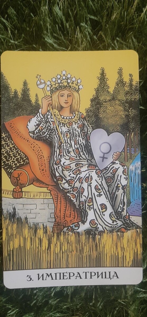 Императрица восседает на троне в цветущем саду, у её ног золотая пшеница, над головой корона из двенадцати звёзд. Скипетр в её руке увенчан шаром — символом мира, над которым она властвует не через силу, а через саму способность давать жизнь. Она беременна, или её платье струится, напоминая текучую воду. Она — сама природа. Глубинный психологический смысл этого архетипа — в интеграции своей питающей, рождающей, заботливой части, независимо от пола.