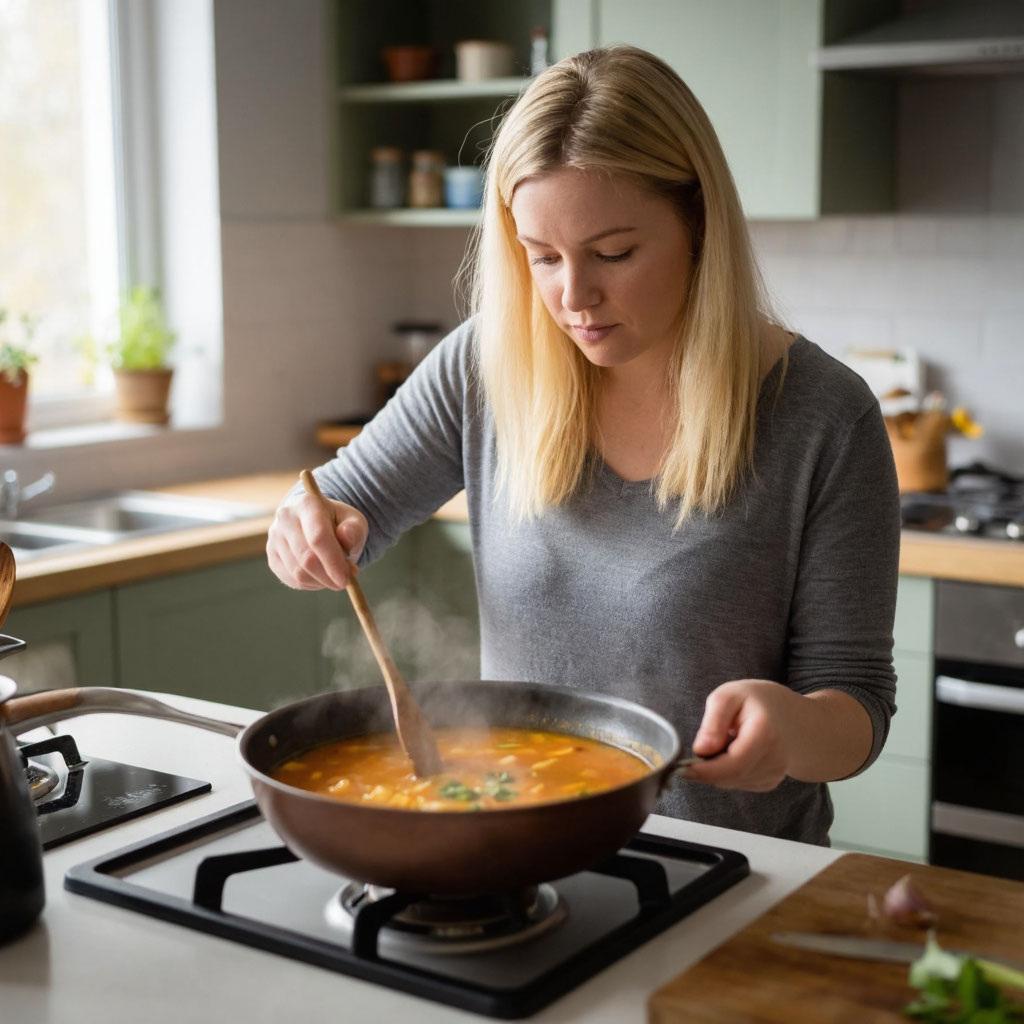 Марина замерла у плиты, держа в руке половник. Суп, который она так старательно варила два часа, вдруг потерял всякий смысл.