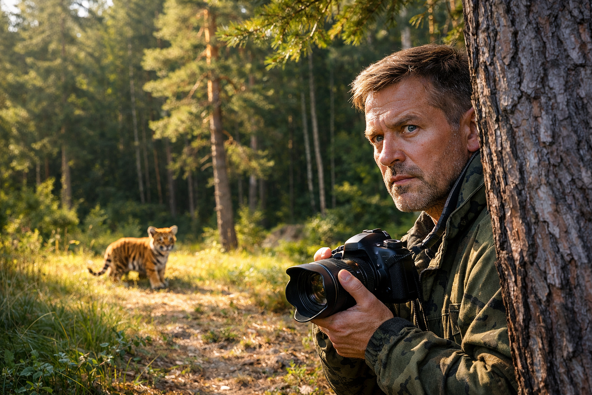 Анатолий недавно заметил, что на его охотничьем участке в тайге появилась новая тигрица с двумя тигрятами. Она пришла сюда, чтобы произвести на свет потомство в тихом и спокойном месте, где нет большого числа хищников. Пока тигрята маленькие, им угрожает множество опасностей.