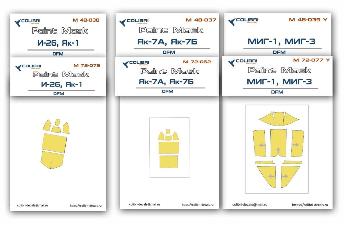 Colibri Decals выпустили маски фонарей И-26/Як-1 ранний, Як-7А/7Б, МиГ-1/3/9 в 1/72 и 1/48 масштабах.