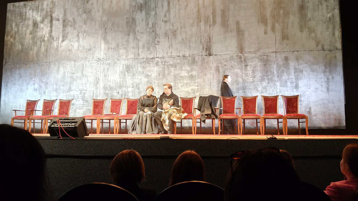 И начнём мы с минусов. Которые, увы, были. И главным минусом лично для меня стало то, что режиссёр, как это часто бывает в наше время, попытался в некоторых местах осовременить сюжет, что не сделало постановку лучше. Также хочется отметить, что юмор, такой же осовремененный, редко попадал в цель. И мне совсем не понравилось, как они показали Пушкина, хотя сам смысл его появление в спектакле я поняла. Кроме того, костюмы тоже были не особо подходящие под настроение спектакля. Хотя в их случае я бы не сказала, что они только портили впечатление: например, тёмные очки, пусть и не вписывались в эпоху, однако имели символический смысл. И символов в спектакле вообще было немало, поэтому, переходя к плюсам, давайте начнём именно с них.