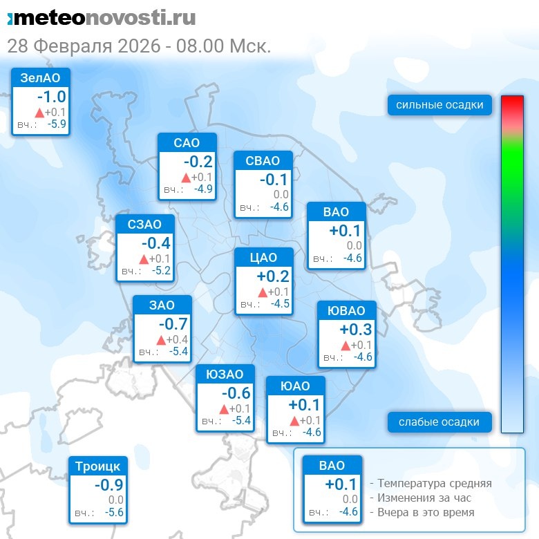 В 8:00 в Москве было от -1.4°C до +0.8°C, средняя температура -0.2°C #погода #Москва #зима #температура #28февраля #суббота