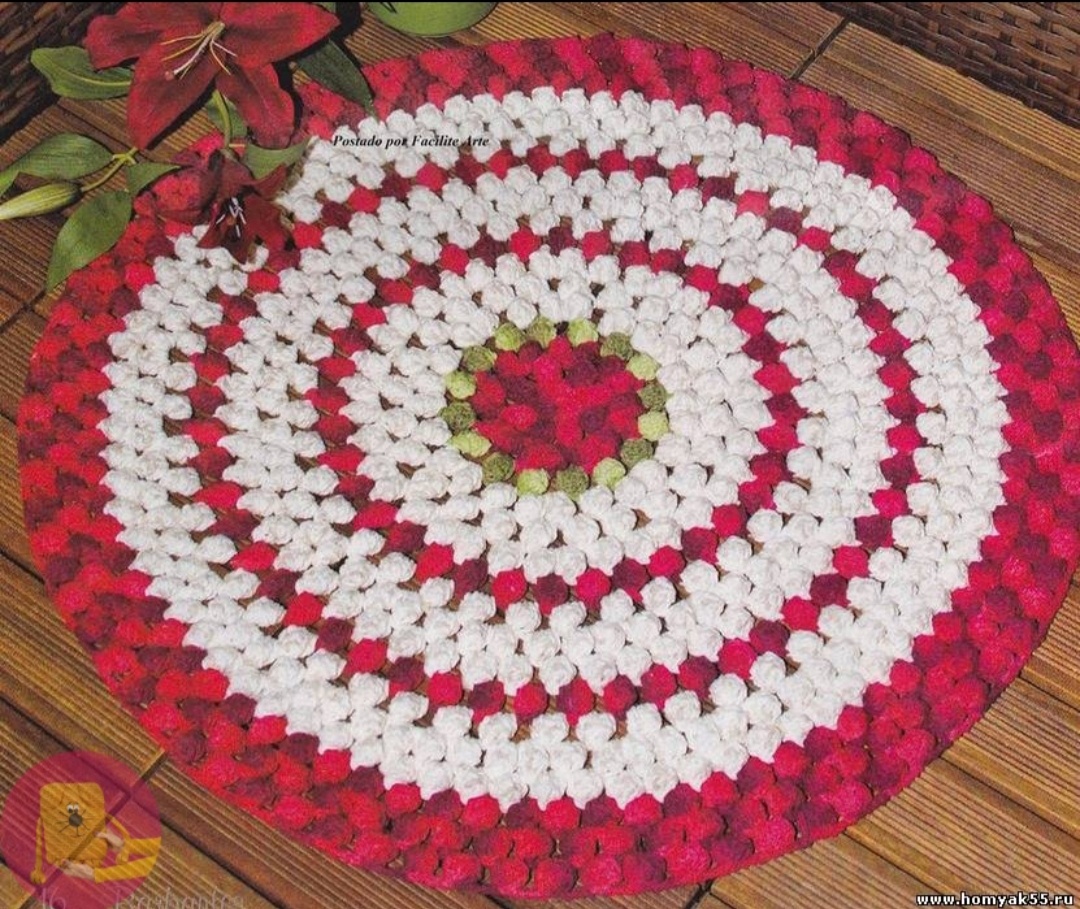 Сколько вязать ? От колличества зависит размер шишечки.3, 4 ,5. Выбирайте . Я вязала такой коврик и шишечки из 4 столбиков.