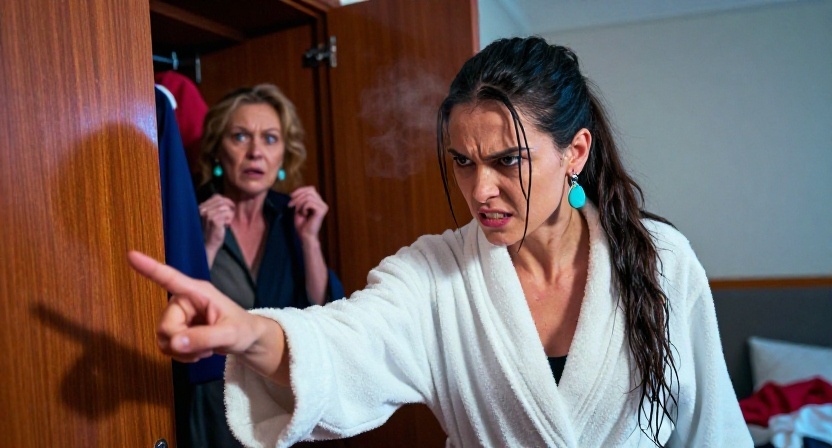 Она вышла из душа, в халате, с мокрыми волосами. Толкнула дверь спальни — и увидела Юлию Михайловну у открытого шкафа.