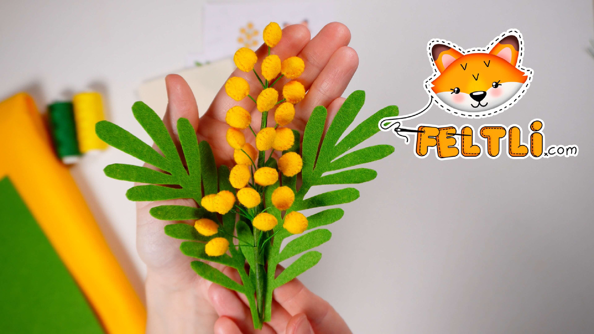Этот видео мастер-класс посвящён созданию веточки мимозы из фетра своими руками. В работе используется мягкий корейский фетр толщиной 1 мм, который позволяет сформировать аккуратные, объёмные соцветия и придать композиции лёгкость и натуральность. Благодаря этому мимоза из фетра выглядит нежной и максимально приближённой к живой веточке. Листочки вырезаются из жёсткого фетра, что помогает сохранить чёткую форму, добавить выразительность силуэту и сделать изделие более аккуратным. В мастер-классе подробно показан процесс подготовки деталей, вырезания листьев, формирования веточки и сборки всех элементов в единую композицию. Эту веточку мимозы из фетра я буду использовать для украшения шоколадницы из фетра. Как сшить шоколадницу и красиво оформить её с помощью мимозы, я покажу в отдельном видео мастер-классе. Таким образом, вы сможете создать не только весенний декоративный элемент, но и полноценный подарочный комплект из фетра своими руками. Мастер-класс подойдёт тем, кто ищет, как сдел