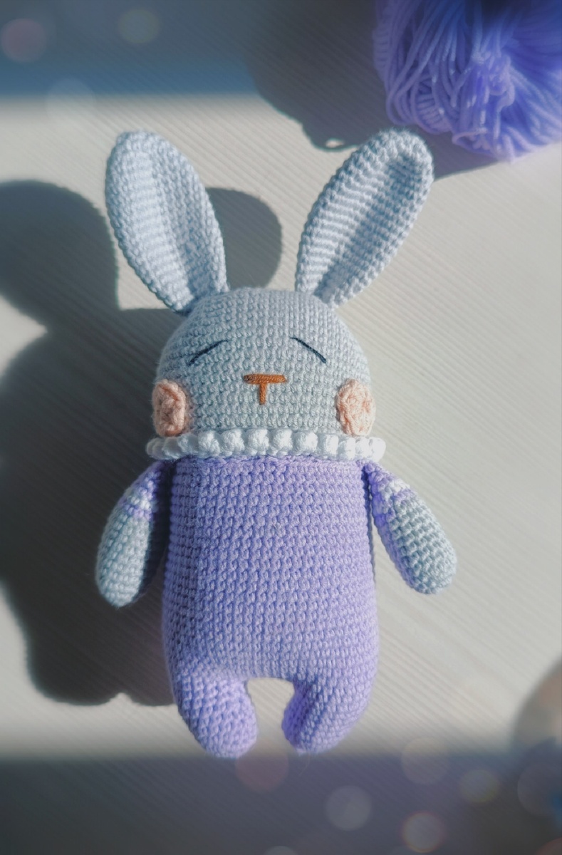 ! Например, вот эту сплюшку я мечтала связать ещё года-так с 2020, а повода все не находилось... Но осенью 2025 был прекрасный повод наконец-то исполнить свою затею - моя подружка детства родила девочку и сплюшка оказалась очень кстати!🥹 Теперь зайка всегда охраняет сон нашей малышки🥰