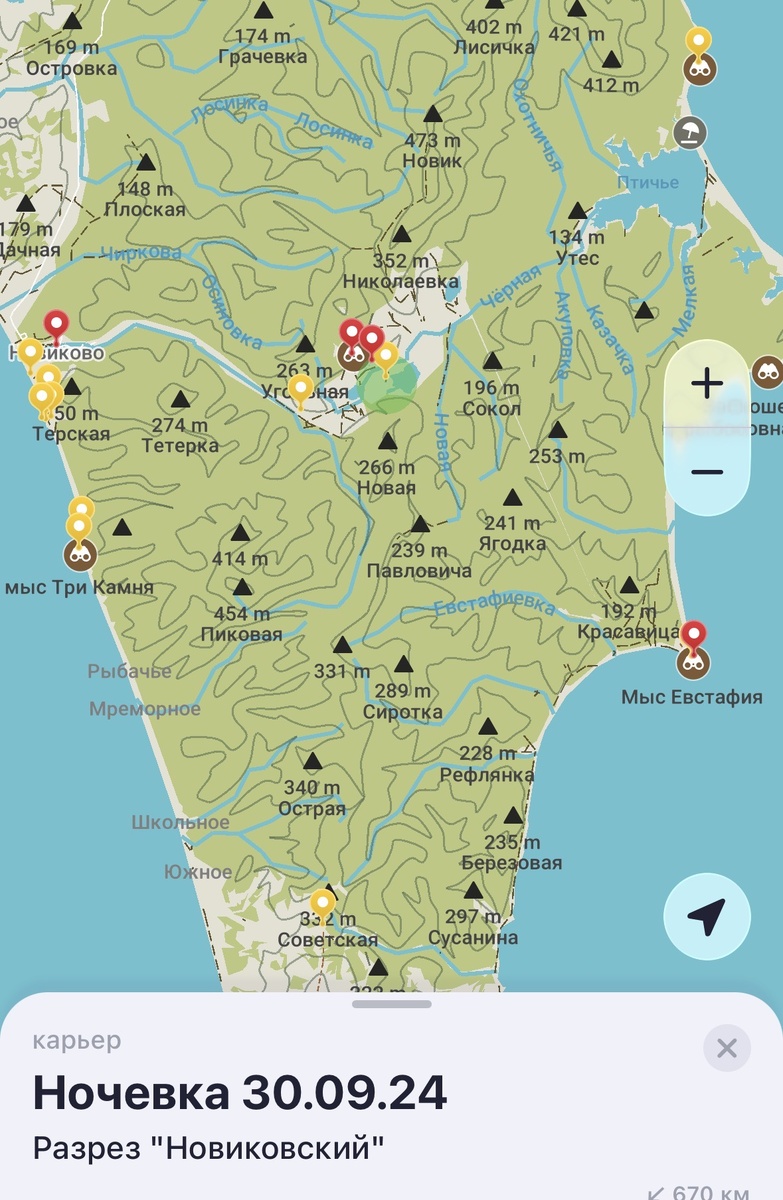 На рассвете поездили по карьеру, изначально не заценив какой-либо красоты, и как-то непринужденно свернули на лесную дорожку, проехав по которой 15 км бесконечных глубоких луж, выехали на протяженное морское побережье с достаточно зыбким черным песком. Интересно же было куда дорожка выведет! Несколько раз хотели развернуться, но в итоге получили просто тонну эмоций от увиденного! Преодолев 2 км зыбкого черного песка мы добрались до прекрасного мыса Евстафия!