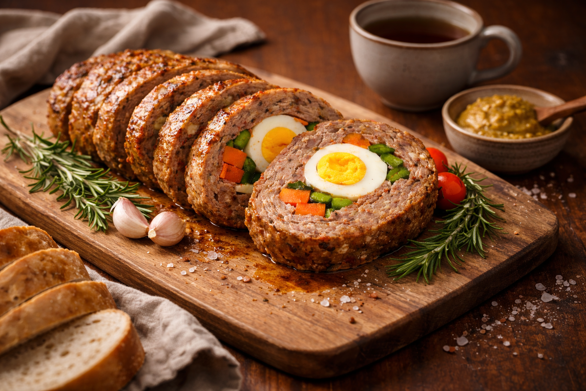 Знакомьтесь: мясной рулет с сюрпризом внутри. Выглядит как ресторанное блюдо, готовится проще простого, а внутри может быть всё, что вы любите: яйца, овощи, сыр, зелень. Сегодня сделаем классический вариант — с вареными яйцами и яркими овощами. Это беспроигрышная история.