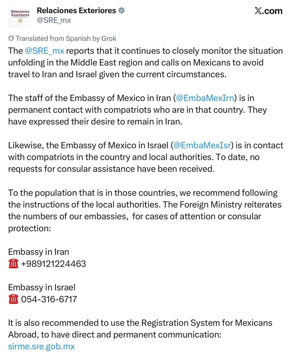 Mexico advises citizens to avoid travel to Israel and Iran amid security concerns