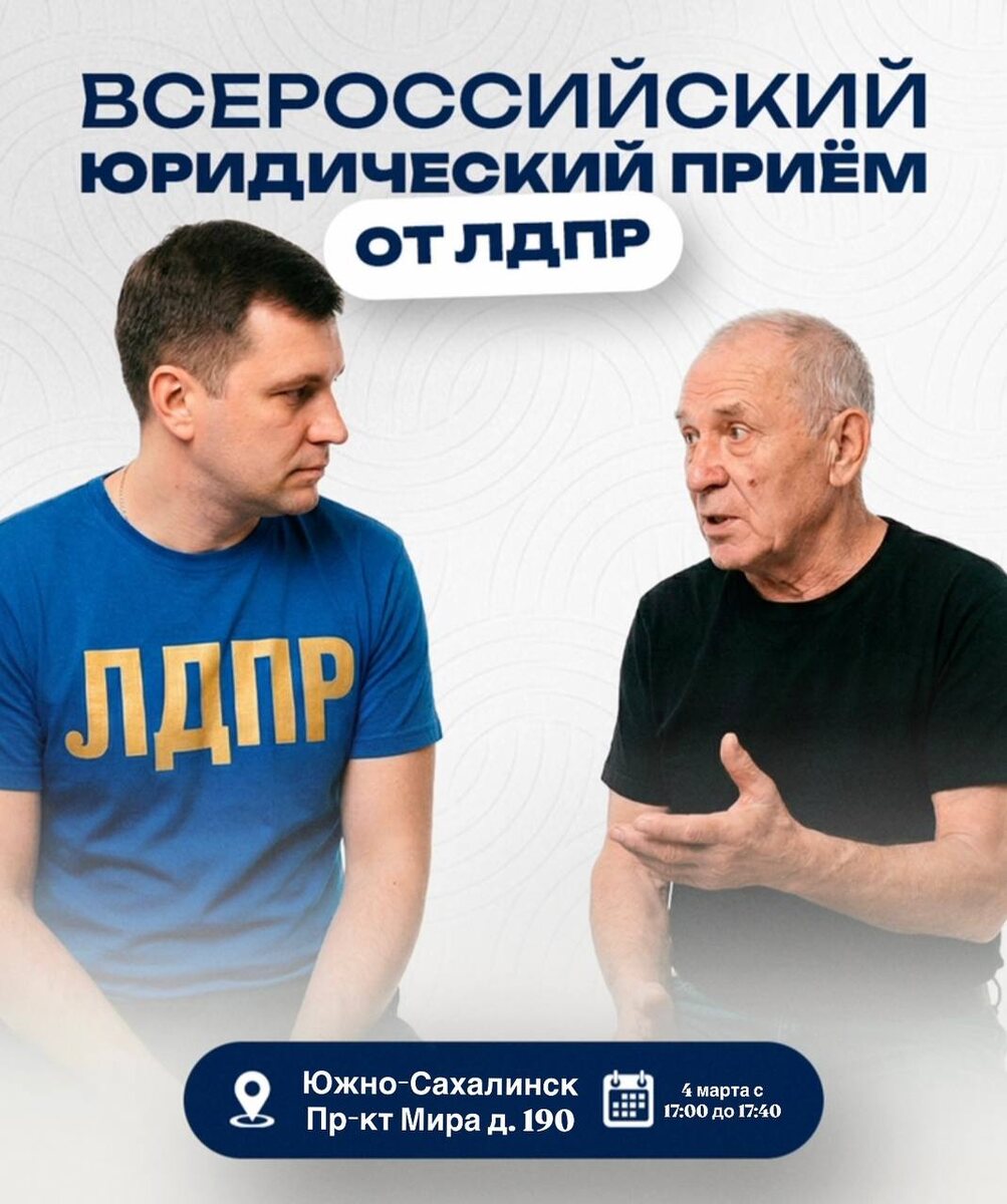 4 марта с 17:00 до 17:40 на бесплатные юридические консультации онлайн приуроченные к Международному женскому дню⚖️ Всем, кто запишется, будет направлена специальная ссылка для подключения. Личное присутствие не требуется - вы сможете получить консультацию прямо из дома или с рабочего места. Это отличная возможность получить профессиональную юридическую помощь и разобраться в самых разных вопросах: - жилищные споры - семейные дела - алименты - трудовые отношения и многое другое Консультации проводят опытные юристы, готовые помочь в любой жизненной ситуации. 📞 Запись по телефону: 8 (4242) 30-05-42 📲 Telegram: +7 924 486-69-64 📧 Электронная почта: sro_pp_ldpr@mail.ru Не упустите шанс получить поддержку!