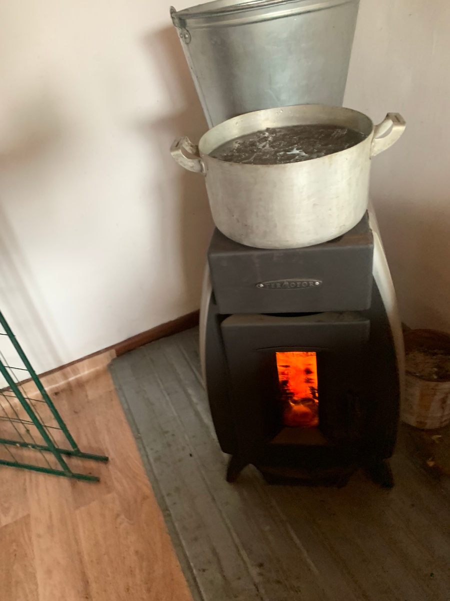Налила снеговой воды, растопила печку и отправилась "раздевать" свои розарии.