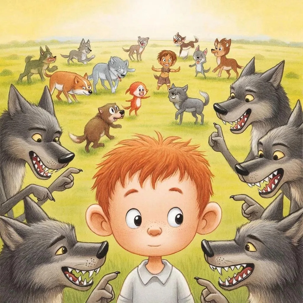 Жил-был в одном лесу молодой Волчонок. Он был не таким, как все: шерсть у него была не серая, а с рыжинкой, и уши чуть длиннее, чем у братьев. Другие волчата сначала просто косились на него, а потом начали дразнить. Обзывали Рыжиком и Лопоухим, не брали в игры, а если он подходил, рычали: «Уходи, ты не такой, как мы!»