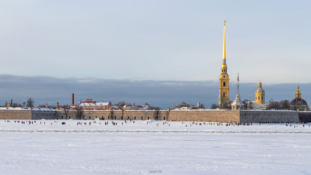 В прошлую субботу выбралась погулять в центр. Хотела ещё пройтись по льду Мойки-Фонтанки, но сильные морозы уже закончились, и лёд на малых речках как-то совсем быстро деградировал, покрылся талыми жёлто-бурыми пятнами и не годился больше для гуляний. Прошла вдоль Зимней канавки на Дворцовую набережную и увидела чудесную картину. Лёд на Неве совсем другое дело, он так легко не сдаётся, и под бдительным надзором патрулей МЧС около Петропавловки по-прежнему прогуливаются сотни людей. Прикольные текстуры на льду Патрульный катер курсирует вдоль ледокольного фарватера и гоняет тех, кто к нему приближается. В остальном - гуляй не хочу. Мега-стройка на Тучковом буяне внезапно обрела формы Нетипичные для питерского пейзажа цветастые пятна на стрелке Заячьего острова - проходящий там фестиваль китайских фонариков, приуроченный к Китайскому новому году Какая-то здоровенная штуковина летает по льду туда-сюда вдоль стен Петропавловки Ещё и гало вокруг солнышка На входе в Петропавловку был какой-т