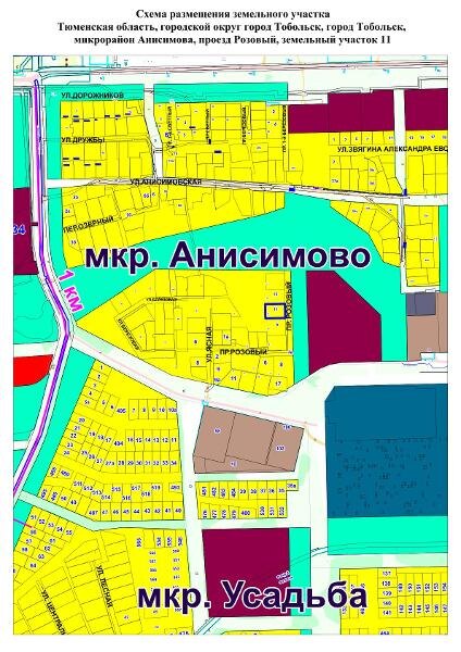 Название: Адрес (местоположение) – Тюменская область, городской округ город Тобольск, город Тобольск, микрорайон Анисимова, проезд Розовый