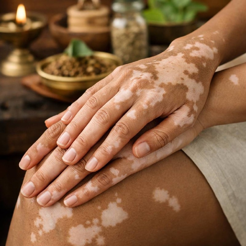 )? В Аюрведе болезнь рассматривается не как отдельное пятно на коже, а как отражение глубинного дисбаланса. Основой всего является теория трёх дош — вата, питта и капха. Когда они находятся в равновесии — тело функционирует гармонично. Когда равновесие нарушается (викрити) — начинается болезнь. Но важно помнить: Аюрведа говорит, что человек здоров только тогда, когда: ✔ в балансе доши ✔ правильно работает агни (13 видов «огня» обмена) ✔ гармоничны 7 тканей (дхату) ✔ своевременно выводятся токсины ✔ спокойны ум (манас), чувства (индрии) и душа (атма) 🌿 Швитра (лейкодерма, витилиго) в Аюрведе В Аюрведе кожные заболевания объединяются словом «кушта» — и это не только проказа, как часто ошибочно думают. Это все кожные нарушения. Швитра (лейкодерма) возникает при: — нарушении дош — загрязнении крови (ракта) — неправильном питании (mithya aahara) — несоответствующем образе жизни (vihara) Особое значение имеет bhrajaka pitta — разновидность питты, отвечающая за пигментацию кожи. Когда она
