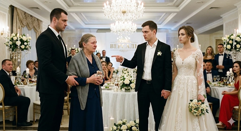 Мария Васильевна стояла перед высокими зеркальными дверями ресторана «Версаль», и её пальцы, привыкшие к тяжёлому труду на почте и прохладе утренних грядок, нервно теребили край старенького ридикюля. На ней было её лучшее платье — тёмно-синее, из плотного крепдешина, которое она берегла почти десять лет. На плечи она набросила тонкую пуховую шаль, выстиранную и вычесанную так бережно, что та казалась облаком.