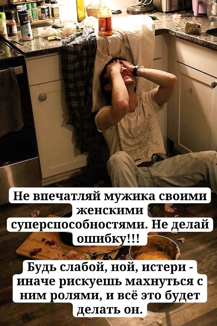 : - Дорогая, а где у нас носки лежат? Ей проще убить, чем объяснить. Я ей говорю: - Ты сама его таким вырастила. Так что нойте, девчонки, нойте, пока не поздно. Пусть лучше они истерики закатывают, чем мы табуретки чиним. 🫶🫶🫶🫶