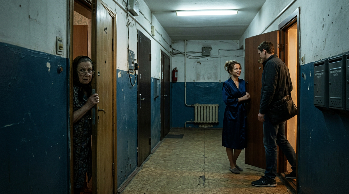У двери квартиры напротив стоит мужчина. Не Алексей — точно не Алексей. Выше, шире в плечах, другая стрижка.