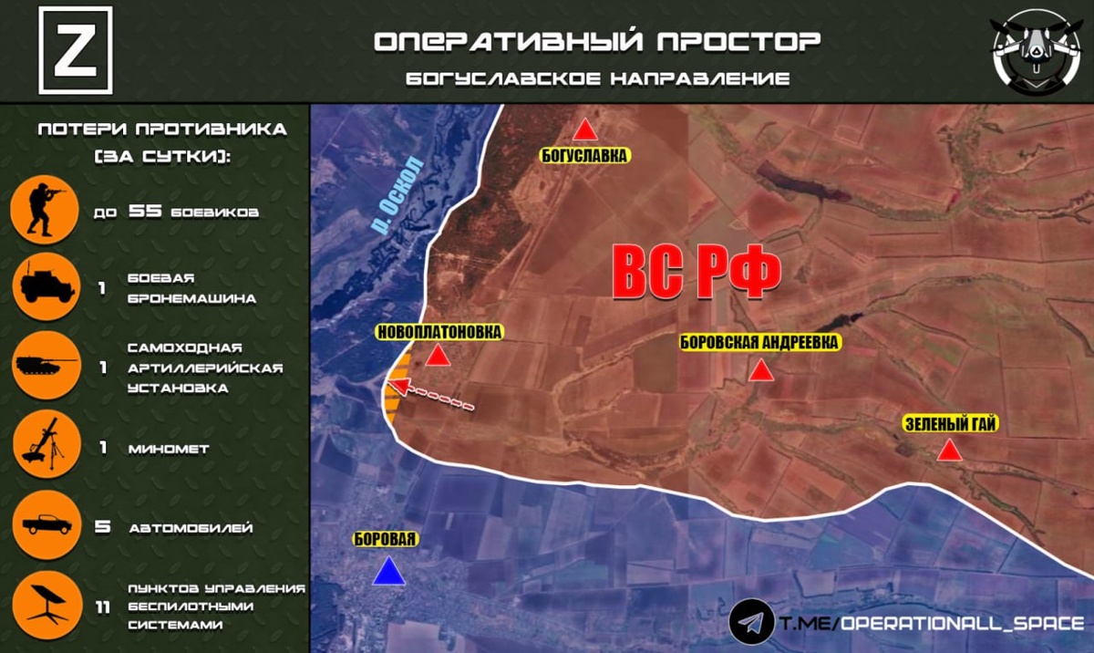 🇷🇺На Богуславском направлении ВС РФ продолжают боевые действия в районе берега реки Оскол