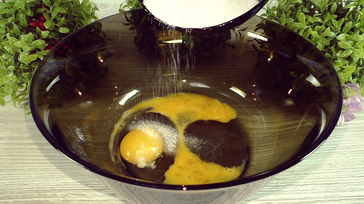 Одно яйцо я целиком отправляю в миску, второе яйцо делю на белок и желток. Белок сразу в тесто, желток перемешиваю в отдельной миске: половину в тесто, а половину на смазку.