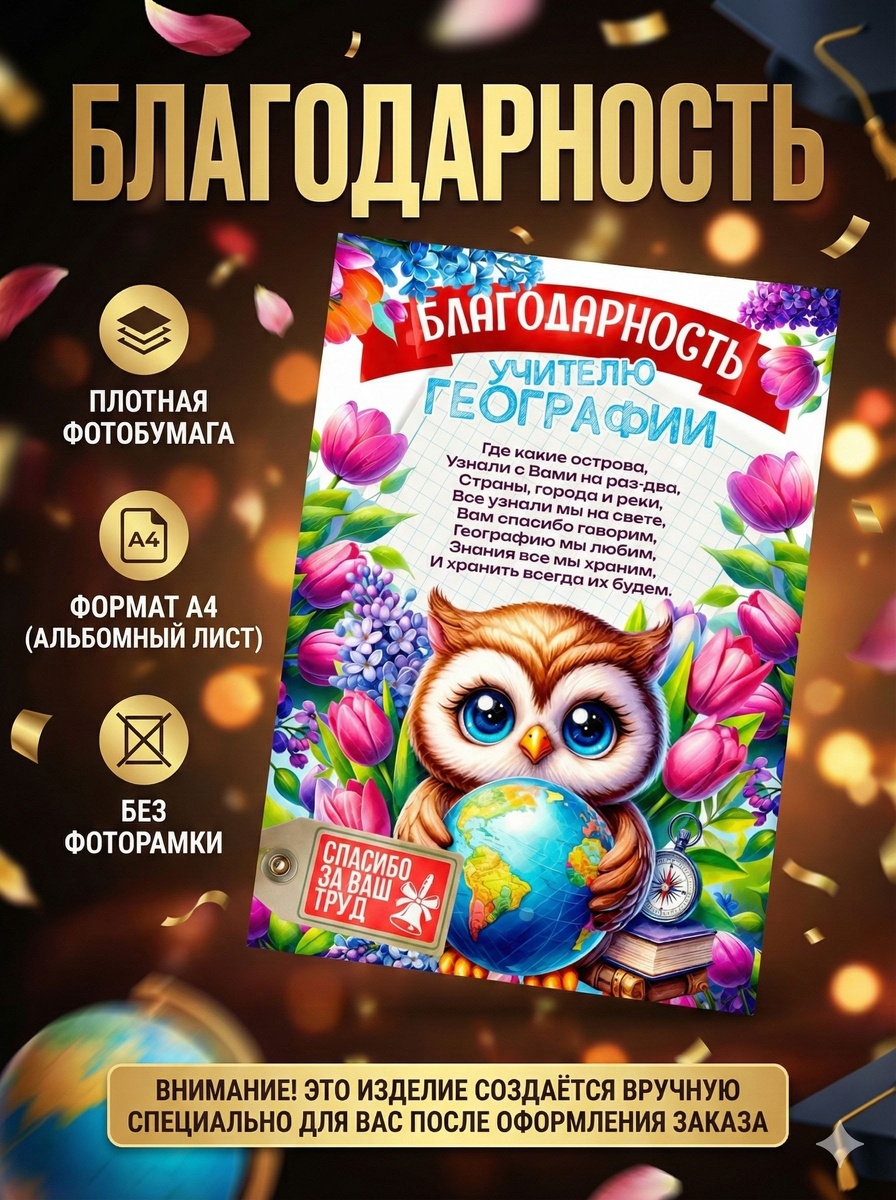 Благодарность учителю географии Формат А4. Плотная фотобумага. Без фоторамки! ✨ #HandmadeGifts 🎨 #DecorPosters Остались вопросы? ✍️ Написать ____ 📢 Подписывайся 👉 Канал | Постеры & Магниты на заказ 💬 Общайся 👉 Чат | Заказы и обсуждения