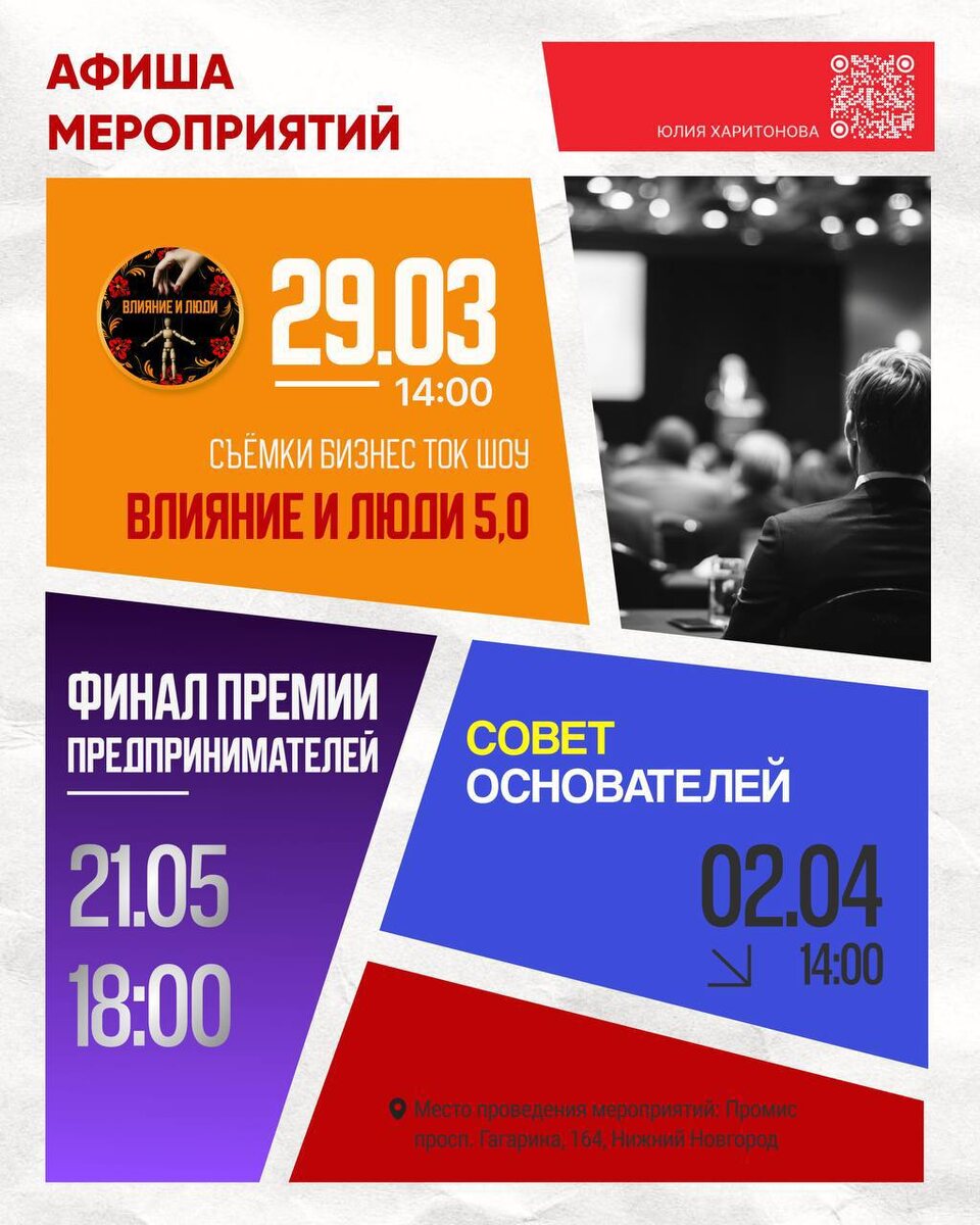 🗓 Впереди весна – время обновления, свежих идей и грандиозных планов 📈Все мероприятия размещаю в один пост, чтобы вы точно ничего не пропустили: ➡️ 3 марта - Вечеринка-практикум «Китайский Новый год. Время перемен» Время: 18.00, сбор гостей с 17.30 Место: Ресторан «Моне», г. Нижний Новгород, Нижневолжская наб., 1в Что будет: ✅Теория – выступление спикеров на тему Время перемен; ✅Практикум – погружение в тему малыми группами и нетворкинг; ✅Финал вечера - Китайский ритуал изгнания злых духов, показ мод 2026, розыгрыш призов и фотосессия с символом года. Программа и билеты ➡️19 марта - Бизнес-завтрак для предпринимателей, руководителей, собственников бизнеса ПЕРСПЕКТИВЫ И ВОЗМОЖНОСТИ 2026. Время: 10.00, сбор гостей с 9.30 Место: ресторан«Моне», г. Нижний Новгород, Нижневолжская наб., 1в (есть своя парковка). Основные темы: ✅Развитие нижегородского предпринимательства и перспективы длябизнеса; ✅ Нейро-комбо: собрать за 15 минут и сэкономить сотни тысяч длясвоего бизнеса; ✅Налоговая ре