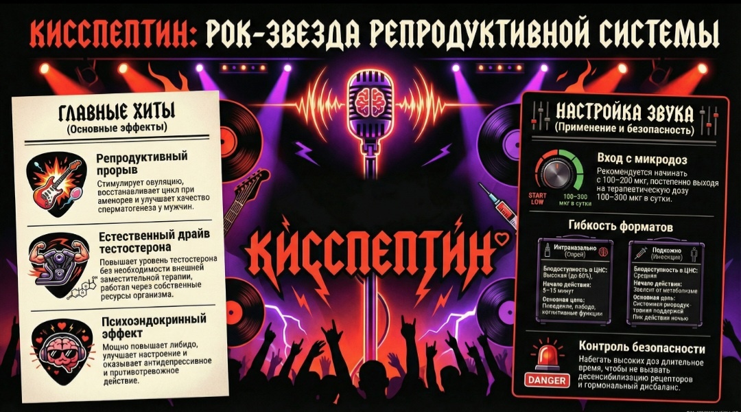 Кисспептин (Kisspeptin) — это группа сигнальных пептидов (семейство кисспептинов), которые играют фундаментальную роль в управлении репродуктивной системой организма. Он является ключевым регулятором оси «гипоталамус-гипофиз-яичники/яички» и считается более мощным инструментом, чем традиционный ХГЧ (хорионический гонадотропин). Кисспептин связывается со специфическими рецепторами KISS1R (GPR54) на поверхности нейронов гипоталамуса. Это запускает следующий каскад реакций: Кисспептин доступен в виде инъекций (подкожно) и назального спрея.