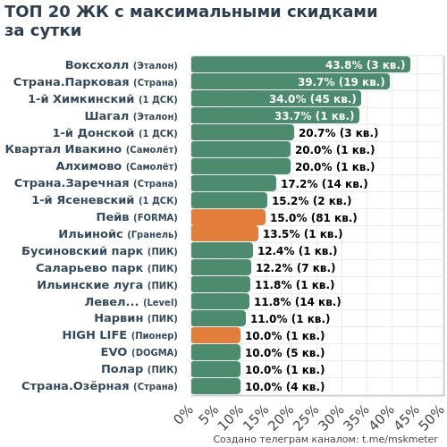 🟩 Честные скидки: 47 ЖК (1133 кв.) 🟧 Маркетинг скидки: 26 ЖК (405 кв.) 💎 МАКСИМАЛЬНАЯ ЭКОНОМИЯ 🏆 Эталон • Воксхолл ├🔻9.8M → 22.4M • 1-к 43м² └🔻9.0M → 21.5M • 1-к 41м² 🥈 Эталон • Шагал └🔻9.8M → 29.0M • 2-к 65м² 🥉 Донстрой • Остров ├🔻8.0M → 99.7M • 3-к 115м² ├🔻7.9M → 99.2M • 4-к 137м² └🔻7.9M → 99.1M • 4-к 151м² 4️⃣ Донстрой • Событие ├🔻7.7M → 96.0M • 4-к 133м² ├🔻5.6M → 69.8M • 4-к 131м² └🔻5.4M → 68.0M • 4-к 131м² 🔑 САМЫЕ ДОСТУПНЫЕ 🏆 1 ДСК • 1-й Донской └🔻1.1M → 5.5M • Студия 24м² 🥈 Самолёт • Богдановский Лес ├🔻449к → 5.9M • Студия 23м²❗️ ├🔻404к → 5.9M • 1-к 32м²❗️ └🔻421к → 6.1M • 1-к 35м²❗️ 🥉 Самолёт • Квартал Ивакино └🔻1.2M → 6.1M • Студия 22м² 4️⃣ Самолёт • Пригород Лесное └🔻114к → 7.1M • Студия 26м² 5️⃣ Самолёт • Новое Видное ├🔻146к → 7.4M • 1-к 38м² └🔻194к → 7.6M • 1-к 38м² 6️⃣ Страна • Страна.Парковая └🔻114к → 7.8M • Студия 22м² ❗️— лоту меньше месяца 👇 Полная статистика: 📲 В Telegram | 🌐 На MskMeter.ru