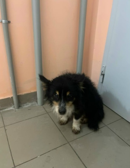 Собакена нашли около многоэтажного дома. Он очень мёрз и плакал. Девушка, которая его нашла, запустила его в подъезд, постелила тряпочку, поставила еды и попросила в домовом чате не выгонять на улицу. И самое странное, до моего приезда за ним поздним вечером собакена действительно не выгнали из подъезда. Что очень неожиданно для нашего пропитанного ненавистью к животным региона.