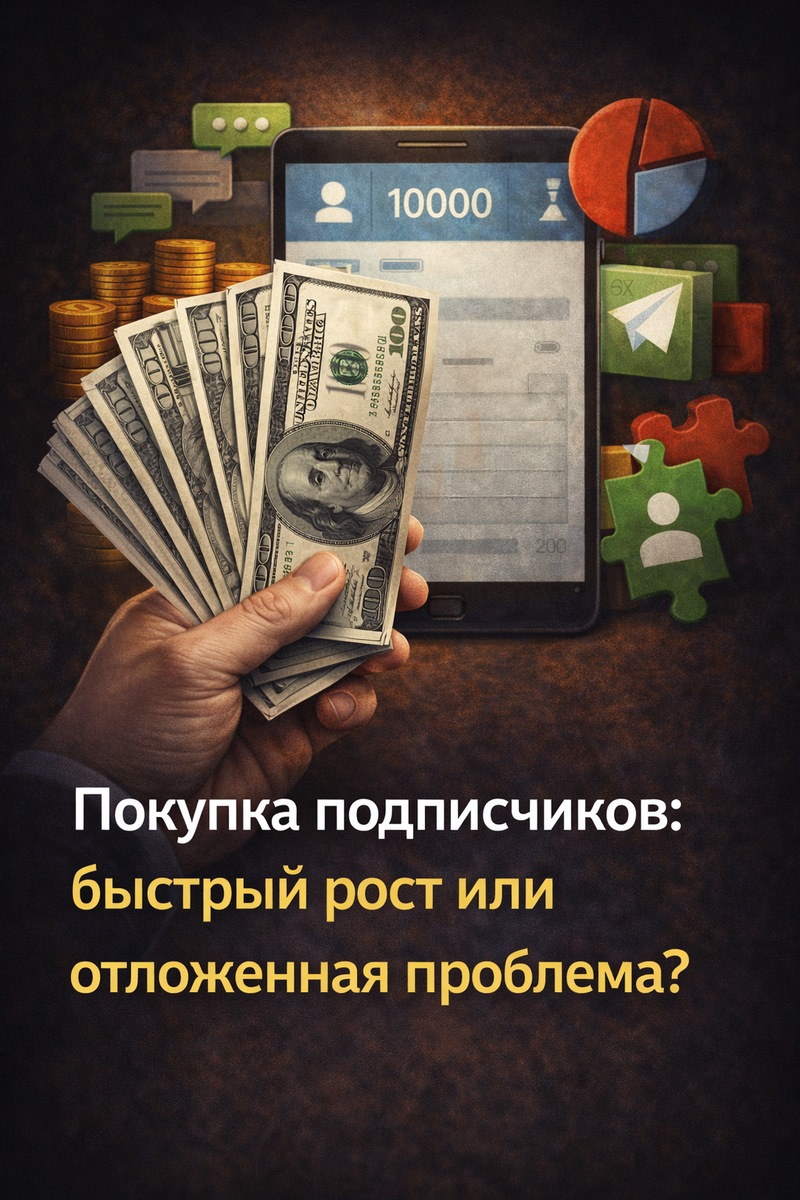 — комментарии Если база растёт, а ER падает, канал начинает выглядеть “пустым”. А это уже влияет на доверие партнёров и рекламодателей. Telegram не продвигает каналы как соцсети, но поведение аудитории влияет на охваты. Если большая часть базы не читает посты, средний охват снижается. В итоге даже живым подписчикам контент показывается хуже. Когда у канала 5 000 подписчиков, но реальный охват 300–400, партнёры это видят. ER — первый показатель, на который смотрят. И даже если формально размер “подходит”, качество аудитории вызывает вопросы. Покупка создаёт ощущение движения. Но она не решает: — позиционирование