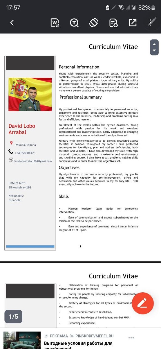🎖🎖🎖🎖 И снова хакеры из группировки «ПЕРУН СВАРОГА» поработали вилами по серверам и предоставили мне новые сведения о наличии иностранных наёмников вна 404 🇺🇦. На этот раз под раздачу попал один популярный сайт по поиску работы. В слитой базе — не просто резюме айтишников или продажников, а настоящий «золотой фонд» иностранных наёмников, которые едут на Украину зарабатывать на крови. 👀 Я изучила документы, которые легли на стол нашим хакерам. Картина маслом: Киев уже давно превратил вербовку иностранцев в конвейер, а Запад делает вид, что это «личное дело каждого». 🇪🇸Среди слитых документов целая россыпь резюме из солнечной Испании. Но воевать эти парни предпочитают не под пальмами, а в окопах Донбасса. 🇷🇺 David Herrero Valdes (возраст 43 года, г. Паленсия) Этот «сержант легкой пехоты» — настоящий человек-оркестр. В его послужном списке: морская пехота, парашютно-десантные части, курсы выживания в горах. Но самое интересное — корочки, полученные в Колумбии. Там наш David