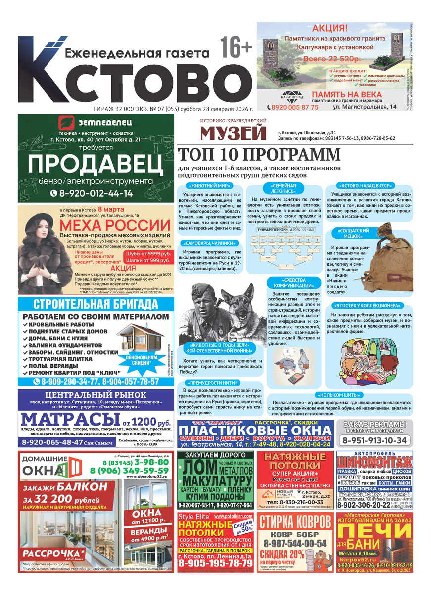 Газета "Кстово" № 55 от 28.02.2026 г.