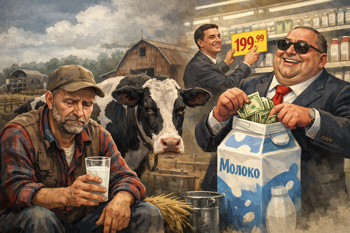 Это значит там, где корова ещё даже не подозревает, что стала участницей рыночных реформ.То есть фермеру теперь платят меньше.И тут возникает простой вопрос: