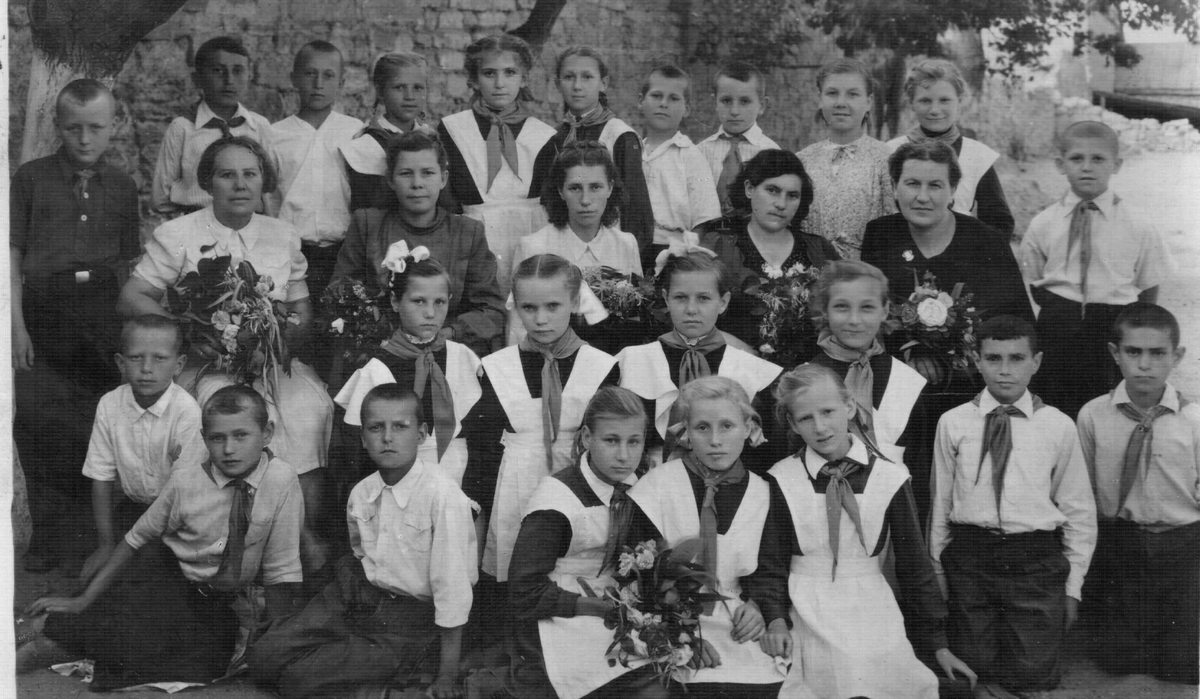 На фотографии мои сверстники – 11 мальчиков и 12 девочек, которые пошли в школу в первый послевоенный год. После окончания нашей маленькой школы, все мы должны будем перейти в другие школы. С кем-то судьба еще сведет. Со многими больше не увидимся.