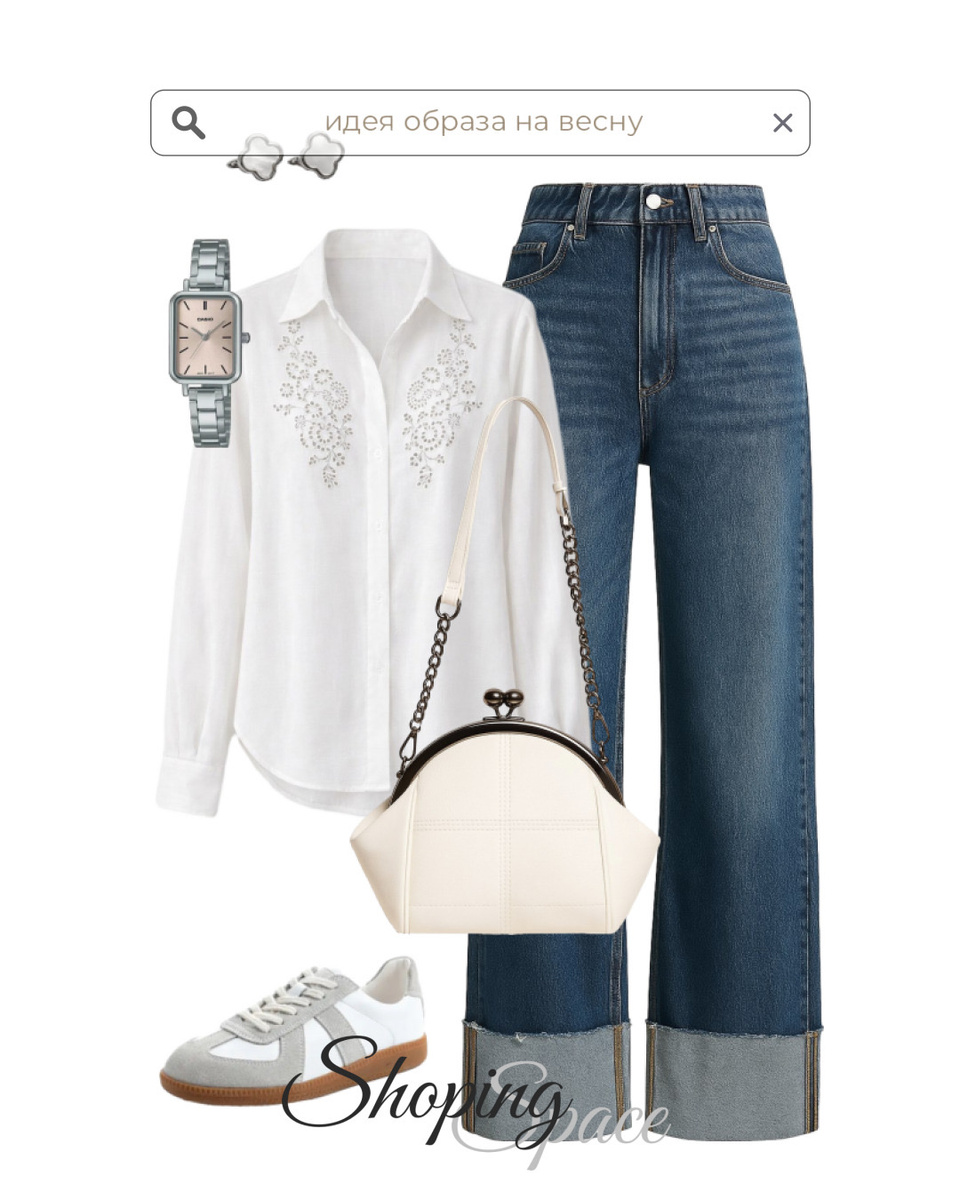 Этот стиль идеально подойдёт тем, кто ценит уют и нежность. Мягкие ткани, светлые тона или цветочные принты — всё это создаёт атмосферу весенней свежести и лёгкости. А джинсы и кеды в образе — базовый комфорт.