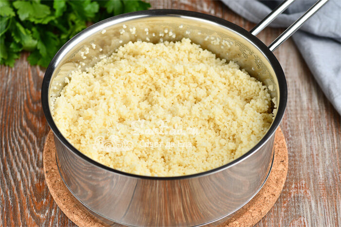 Гарнир за 5 минут из самой "ленивой" крупы в мире! Еще покажу 2 варианта, чем дополнить этот прекрасный гарнир. Хотя вариантов много. Быстро готовить и очень вкусно. Такой гарнир отлично подходит и к мясу, и к рыбе. На приготовление уходит 5 минут. Ничего варить и обжаривать не надо. Порции 3-4 Время подготовки 1 минута Время приготовления 5 минут Ингредиенты Инструкции 1. Для приготовления этого быстрого гарнира использую кускус. Это отличная крупа, которая готовится очень быстро, и всегда получается рассыпчатая. Промывать крупу не надо. Кускус уже обработан и готов к употреблению. Промывание крупы может привести к тому, что крупинки слипнутся и блюдо не получатся рассыпчатыми. Отмеряем кускус стаканом (1 стакан, объем 250 мл, вмещается 180 г крупы). Это самая «ленивая» крупа в мире :) Ее не надо промывать, ее не надо варить, достаточно залить кипятком на 5 минут. 2. Высыпаем кускус в ковш или в любую другую глубокую посуду, добавляем соль и растительное масло. Растительное масло можн