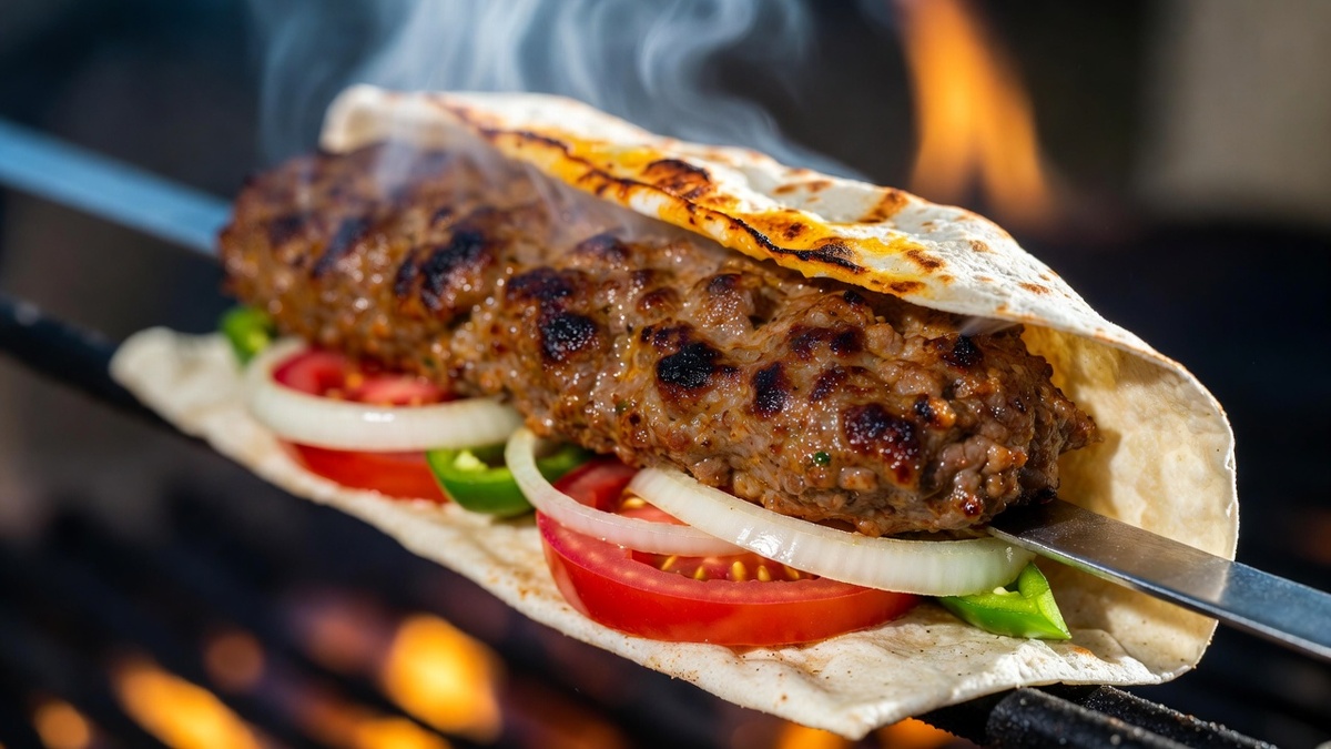 Готовы к гастрономическому путешествию по Турции? Фарш из баранины с красным перцем, луком и специями, нанизанный на шампур и жареный на углях.