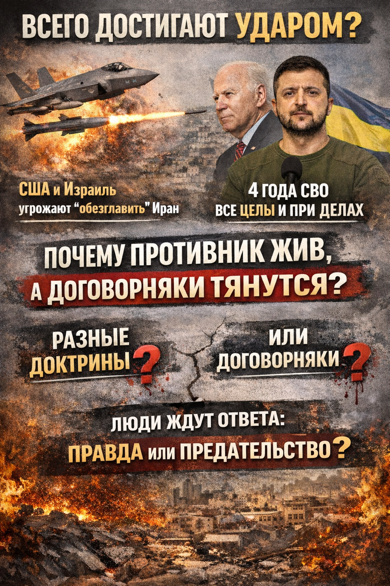 а в других — даже не декларируется, то это: Общество вправе задавать эти вопросы. Потому что если конфликт позиционируется как экзистенциальный, как борьба за будущее и безопасность, то логика тотального давления должна быть последовательной. Если же ключевые центры власти по обе стороны остаются неприкосновенными годами — это неизбежно рождает подозрения в договорных рамках войны.