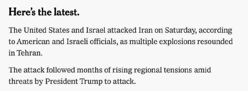 ❗️ США принимали участие в атаке на Иран, утверждает The New York Times со ссылкой на американского чиновника