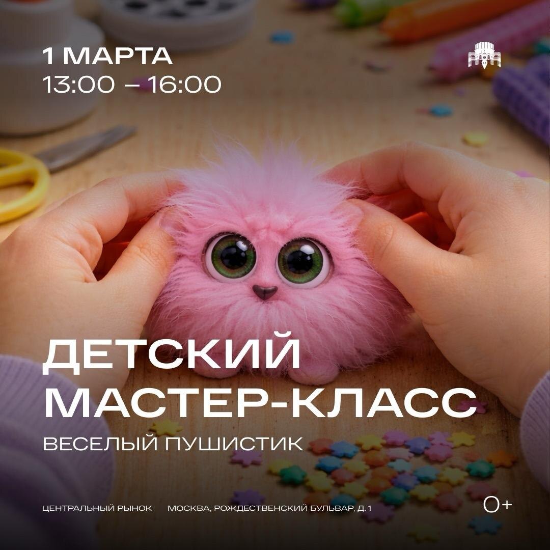 🔥 1 марта, 13:00–16:00 | Фудхолл «Центральный рынок», Рождественский бульвар, д.1 🏎 Big Baby Show «Гонки с Сонником» Большое интерактивное шоу для самых активных: весёлые соревнования, игры на скорость, зажигательная музыка и любимый герой Сонник 🎨 Детский мастер-класс «Веселый пушистик» Дети сделают веселую игрушку из пушистых ниток и блестящего фоамирана. Создадите тело пушистика из мягкого помпона, добавите длинные ушки и лапки. В завершение ребята смогут прикрепить глазки, ресницы и носик своему новому другу. *всего 30 мест на мастер-класс запись в порядке живой очереди у организаторов на 0 этаже 🧷 Бесплатная Москва