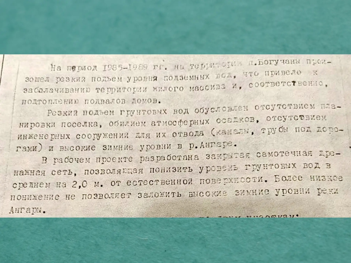 Это выдержка из официального документа 1990 года, обнаруженного в архивах Богучанского сельсовета. Документа важного для понимания и решения проблемы наших дней - подтопления части улиц села Богучаны. Об этом рассказал в МАХ-канале глава Богучанского округа Алексей Медведев.