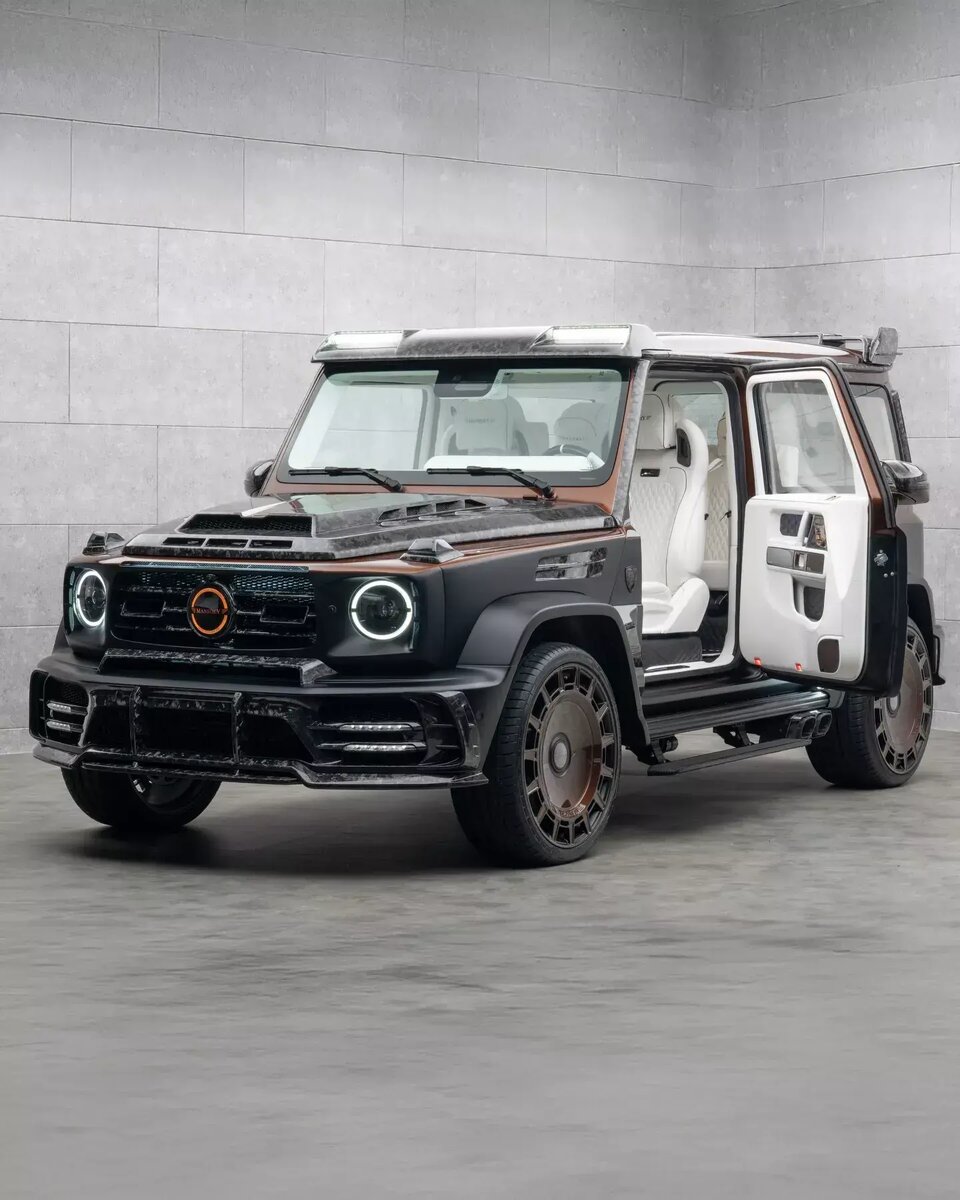 Автомобиль получил название Gronos Coupe EVO C. Как пишет Carscoops, этот проект сложно назвать практичным. Инженеры превратили утилитарный "кубик", который в 2025 году установил рекорд продаж, в игрушку для тех, кто хочет выделиться любой ценой. Главная странность кроется в названии: это двухдверное "купе", причем с задними дверями, открывающимися против хода. Доступ на задние сиденья стал настолько неудобным, насколько можно себе представить. Внешность автомобиля получилась максимально агрессивной. Карбоном отделаны передний бампер, решетка радиатора и капот, расширители колесных арок, задний диффузор и спойлер на крыше. Салон полностью перешит мягкой белой кожей с черной контрастной прострочкой. Разумеется, и здесь нашлось место для вставок из карбона. О технических характеристиках и стоимости машины создатели традиционно умалчивают. Однако, судя по предыдущим работам Mansory, можно ожидать, что мощность стандартного V8 будет значительно увеличена. Не будет сюрпризом, если отдача пр