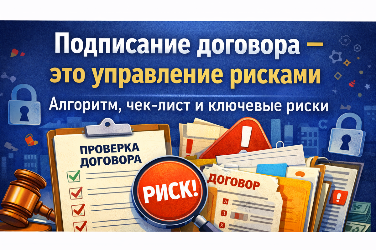 В первой части мы разобрали базовые ошибки. Теперь — системный подход. Ниже алгоритм действий, который должен применяться перед каждым подписанием. Он нужен не юристам. Он нужен собственникам и руководителям. 1️⃣ Запросить проект договора и реквизиты контрагента 2️⃣ Проверить контрагента (обязательно) 3️⃣ Проанализировать договор по чек-листу 4️⃣ Выявить критические и высокие риски 5️⃣ Направить протокол разногласий 6️⃣ Согласовать финальную письменную версию 7️⃣ Проверить полномочия подписанта 8️⃣ Подписать и получить свой экземпляр 9️⃣ Сохранить в дело и внести в реестр договоров Простой алгоритм — но именно его игнорирование чаще всего и стоит миллионы. Проверьте: ❗ Подписант без полномочий — договор может быть признан недействительным. Должно быть понятно: Обязательно: Размытый предмет = высокий риск. Проверьте: «В разумный срок» — это приглашение к спору. Важно: Неопределённость в цене = будущий конфликт. Должно быть ясно: 100% предоплата незнакомому лицу без обеспечения —
