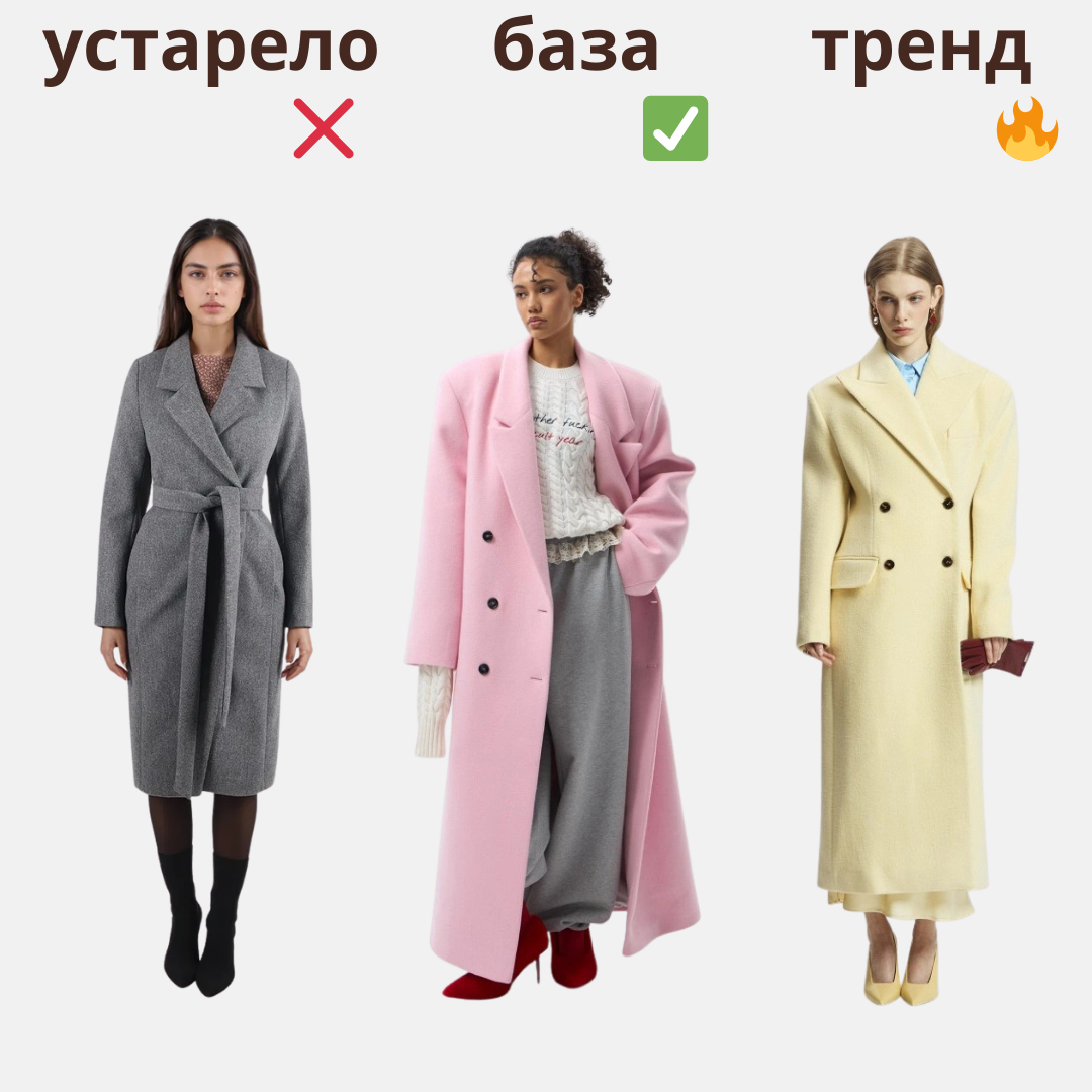 ❌1. Пальто без объёмов/Пальто прямого силуэта/Приталенное пальто.