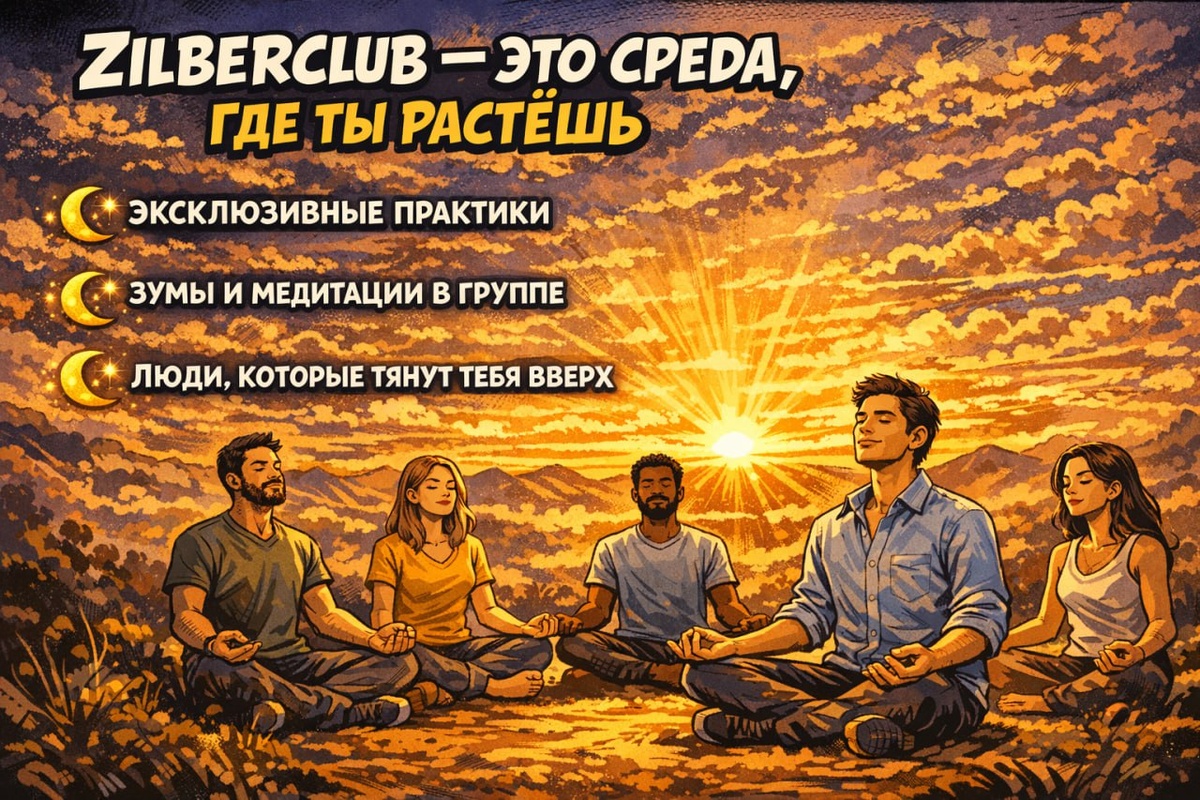 В этом канале я объясняю, как устроена Игра. И буду продолжать. Но на прошлой неделе я писал про среду. Про то, что если ты самый умный в своей компании — ты не растёшь. Про то, что среда — это гравитация, которая либо тянет вверх, либо держит на месте. ZILBERCLUB — это и есть та среда. Что внутри: Эксклюзивные практики, которых никогда не будет в открытом доступе. Еженедельные зумы и групповые медитации — те самые, где поле группы несёт тебя глубже, чем ты сам бы дошёл. Полное погружение в систему «Игра жизни» — не отдельные посты, а целостная карта, по которой ты начинаешь жить по кайфу. И сообщество людей, которые говорят на одном языке — Архитектор, аватар, Игрок — и тянут друг друга вверх. Это не курс, который ты проходишь и забываешь. Это среда, в которой ты находишься. Каждую неделю. И которая меняет тебя просто по факту присутствия. $20 в месяц или 1490 руб. Через 3 дня — полнолуние. В клубе мы будем встречать его вместе. Если хочешь начать с мощного момента — это он. Ссылк