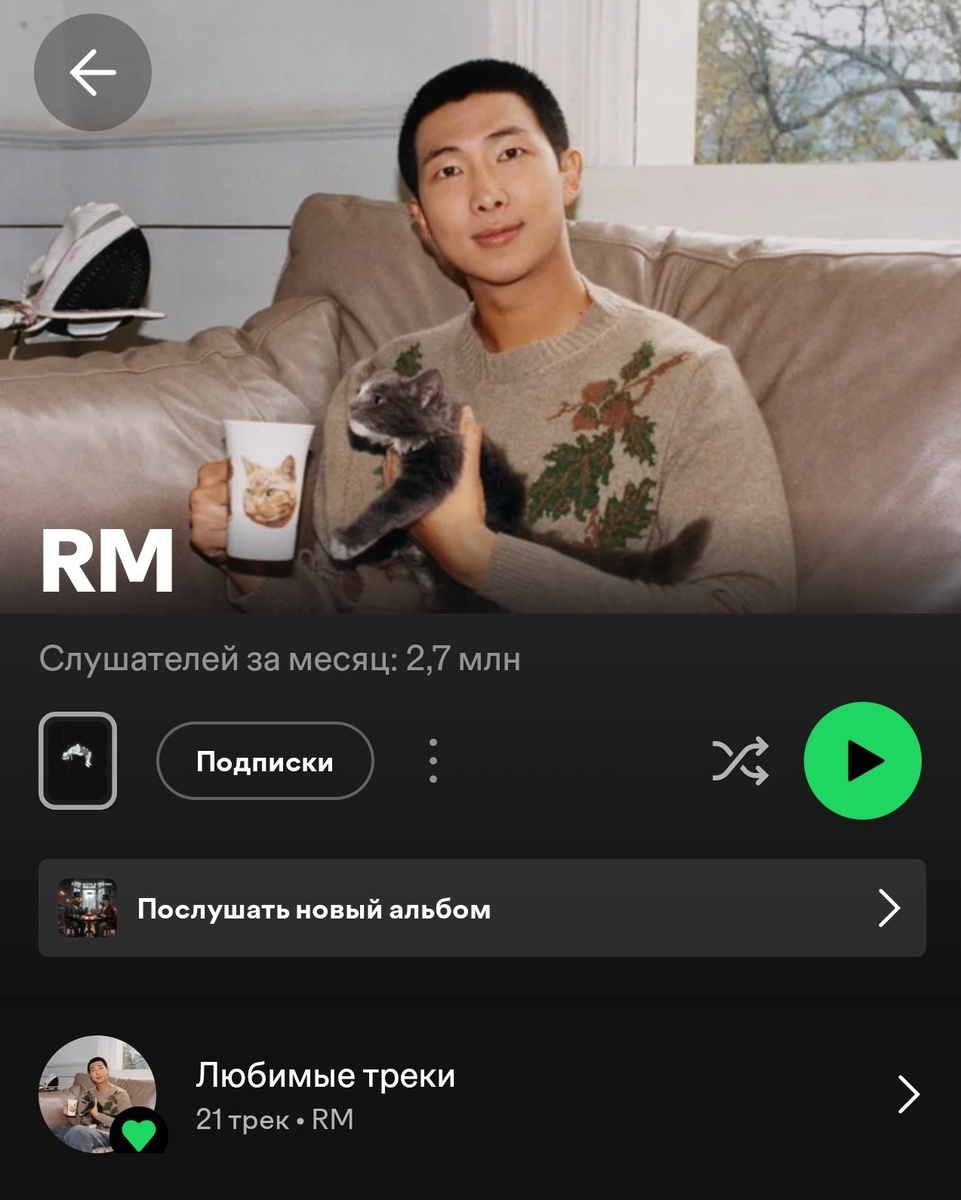 🍊 На официальных аккаунтах RM в Spotify и Джина в Apple Music появились сгенерированные ИИ песни.