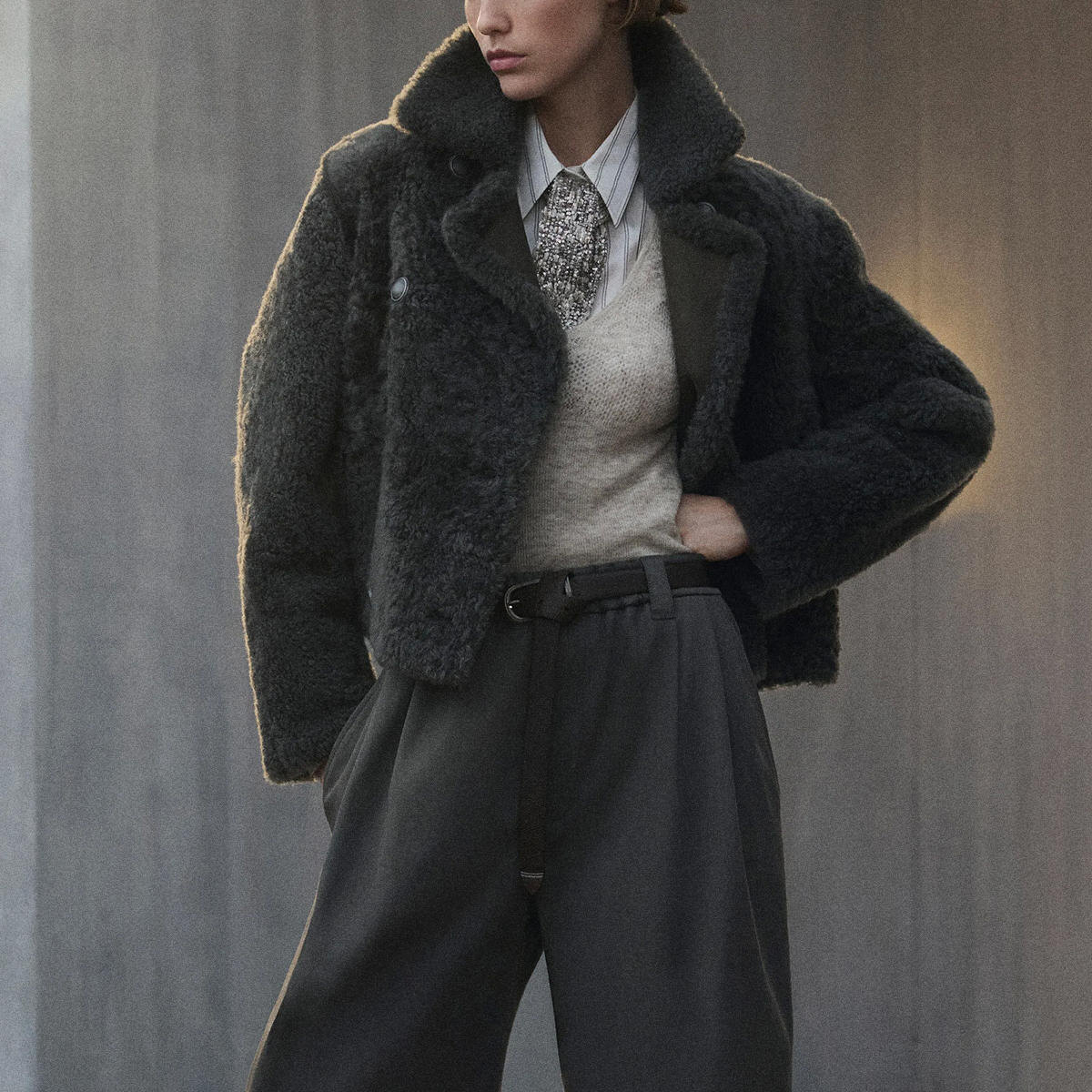 Материалы, их сочетания смотрятся очень дорого. Силуэты выверены. Несмотря на кажущуюся расслабленность образов, все настолько аккуратно собрано — от точеной формы объемных курток до посадки свободных брюк.