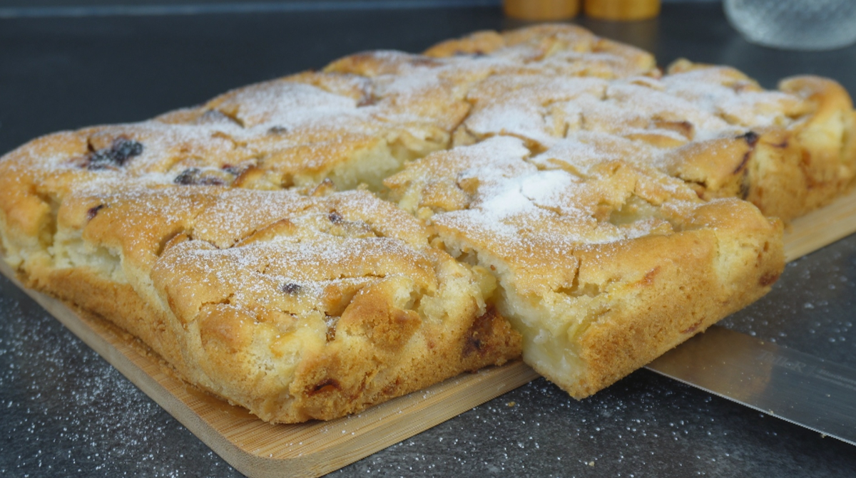 - Хрустящая корочка и влажность. Растительное масло и сахар при нагревании карамелизуются, давая красивую румяную корочку. А яблоки в процессе выпечки выделяют сок, который пропитывает мякиш, делая его влажным, но не сырым — именно поэтому в составе и нужен крахмал, который впитает лишнюю влагу.