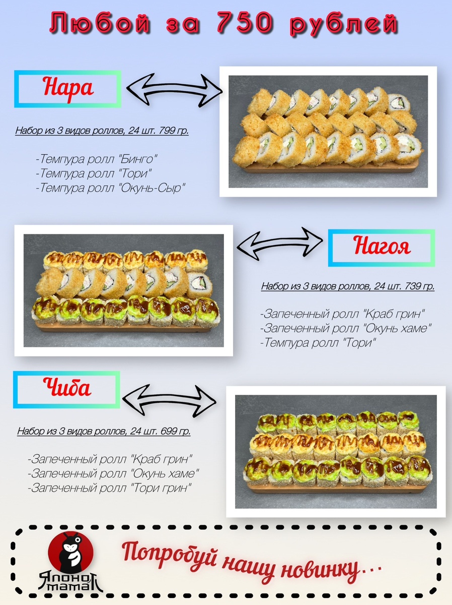 🥘 Ни работы, ни заботы, ведь у нас сейчас суббота! 🤪 Ждём Вас за вкусными роллами 🔥⠀ _________________⠀ 🌐 Закажи на сайте: jmom.ru 📞 или по телефону: +7 (901) 530-41-14 📶 Категория: Ресторан 🏢 Суши-бар Японо Мама 📍 г. Чехов, Земская улица, 4 ⏱ Часы работы: 10:30-22:30 ⭐Разместить публикацию ⭐Поддержать голосом ✅ Где поесть, Чехов!? https://dzen.ru/id/670a701b353dbb6d0fb04a97 http://vk.com/gdepoestchekhov http://dzen.ru/gdepoestchekhov